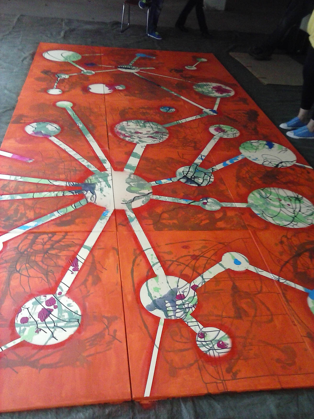 Hierbei handelte es sich um eine Ausstellung aller Institutionen, die im Landkreis Ebersberg mit psychisch erkrankten Menschen arbeiten. Kunstschaffende, kunsttherapeutisch Begleitete, oder Künstler, die von einer psychiatrischen Erkrankung betroffen sind, konnten hier ihre Werke ausstellen und somit auch öffentliche Anerkennung finden. Da wir einige leidenschaftliche Künstler unter uns haben, war die Beteiligung aus unserer Sicht groß. Ebenso fand ein Workshop statt, unter der Führung eines Künstlers aus dem Landkreis EBE und den Kunstschaffenden der beteiligten Einrichtungen, der zur Aufgabe hatte, die Wand des Sitzungsaals im Landratsamt EBE zu gestalten. Aus vielen einzelnen Leinwandbildern entstand zusammengesetzt ein großes schönes Werk.